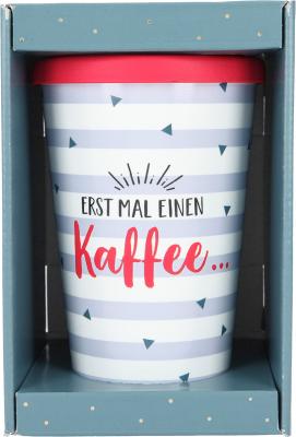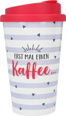Dieser stylishe Trinkbecher mit dem Spruch Erst mal einen Kaffee… für unterwegs sorgt für beste Laune. Ob heißer Tee, kühle Limo oder Wasser: Dank der verschließbaren Trinköffnung geht nichts daneben.