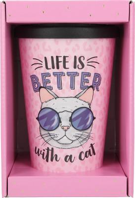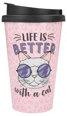 Dieser stylishe Trinkbecher mit dem Spruch Life is better with a cat für unterwegs sorgt für beste Laune. Ob heißer Tee, kühle Limo oder Wasser: Dank der verschließbaren Trinköffnung geht nichts daneben.