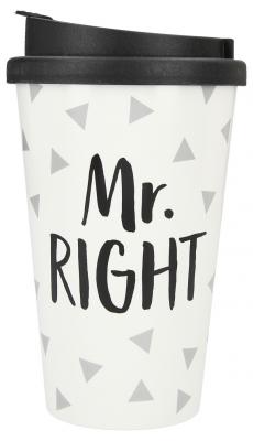 Dieser stylishe Trinkbecher mit dem Spruch Mr. Right für unterwegs sorgt für beste Laune. Ob heißer Tee, kühle Limo oder Wasser: Dank der verschließbaren Trinköffnung geht nichts daneben.