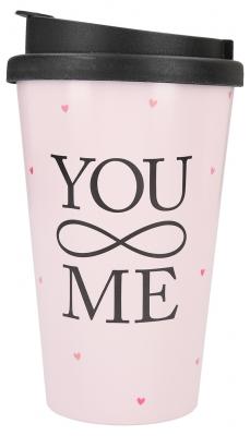 Dieser stylishe Trinkbecher mit dem Spruch You & Me für unterwegs sorgt für beste Laune. Ob heißer Tee, kühle Limo oder Wasser: Dank der verschließbaren Trinköffnung geht nichts daneben.