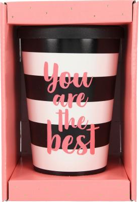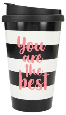 Dieser stylishe schwarze Trinkbecher mit dem Spruch You are the Best und weißen Streifen für unterwegs sorgt für beste Laune. Ob heißer Tee, kühle Limo oder Wasser: Dank der verschließbaren Trinköffnung geht nichts daneben.