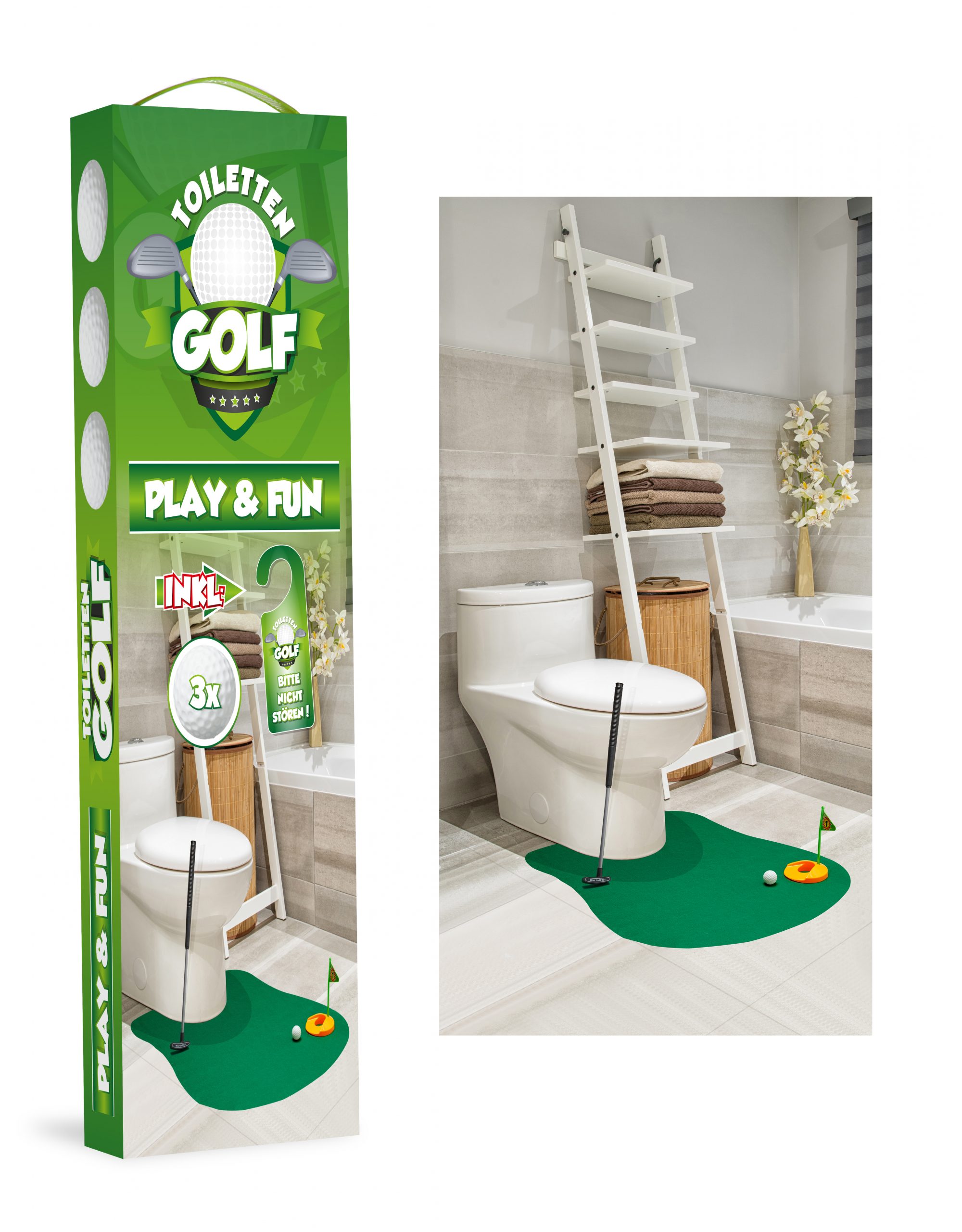 Ob für Sie selbst, als lustige Geschenkidee für Golf-Fans oder als origineller Gag bei der nächsten Party – dieses Set sorgt garantiert für Lacher und gute Laune. Es ist einfach aufzubauen, platzsparend zu verstauen und sorgt bei jedem Toilettengang für Abwechslung. Auch Kinder finden großen Gefallen daran – so wird sogar der Besuch auf dem WC zum Erlebnis.