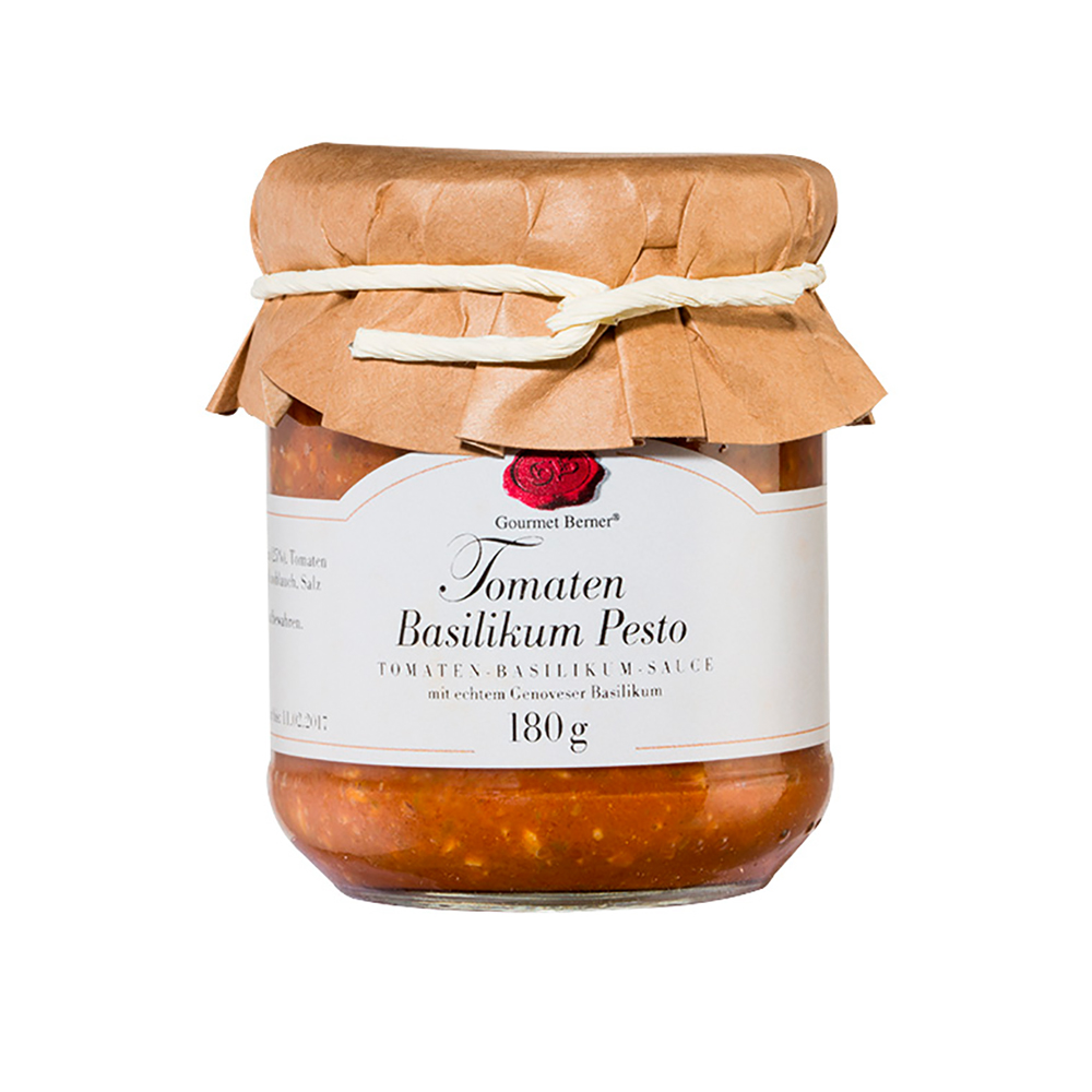In der Welt der feinen Küche gibt es kaum etwas, das den Gaumen so verzaubert wie das Aroma frischer Tomaten und duftendem Basilikum. Die Köstlichkeit dieser Zutaten wurde in Perfektion von Gourmet Berner® – “Pesto al Pomodoro” eingefangen. Dieses Pesto ist mehr als nur eine Sauce – es ist ein wahrer Geschmackserlebnis, verpackt in einem handlichen 180g Glas.