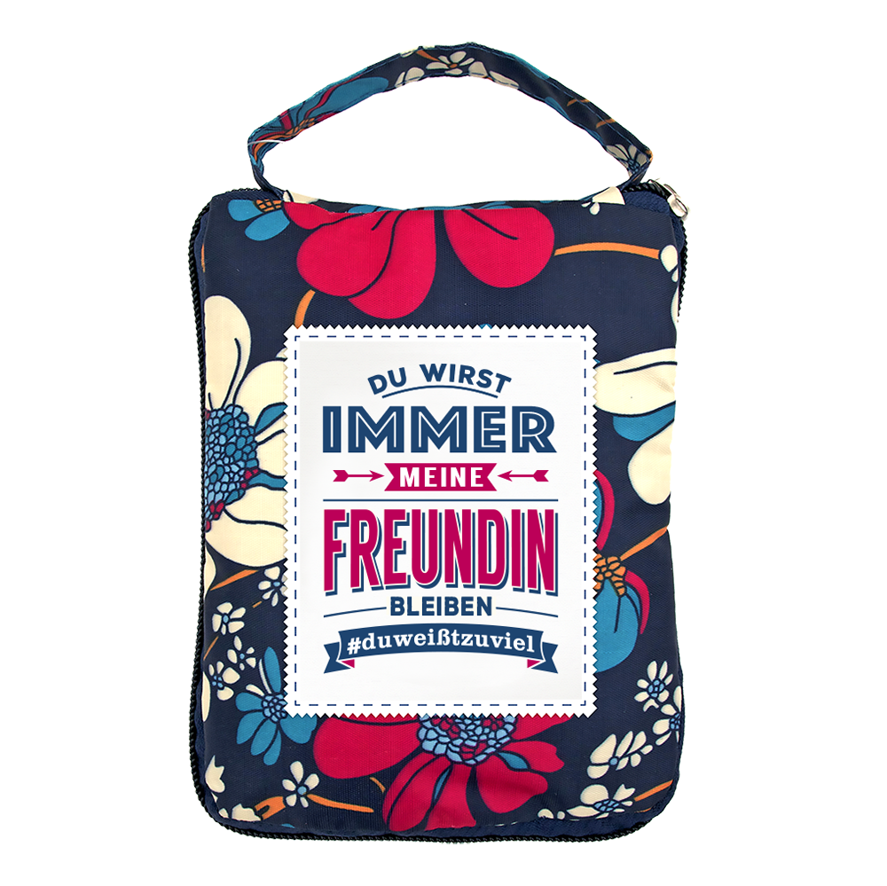 Mit ihrem mehrfarbigen, farbenfrohen Muster und beliebten Sprüchen ist diese strapazierfähige Einkaufstasche einmalig.