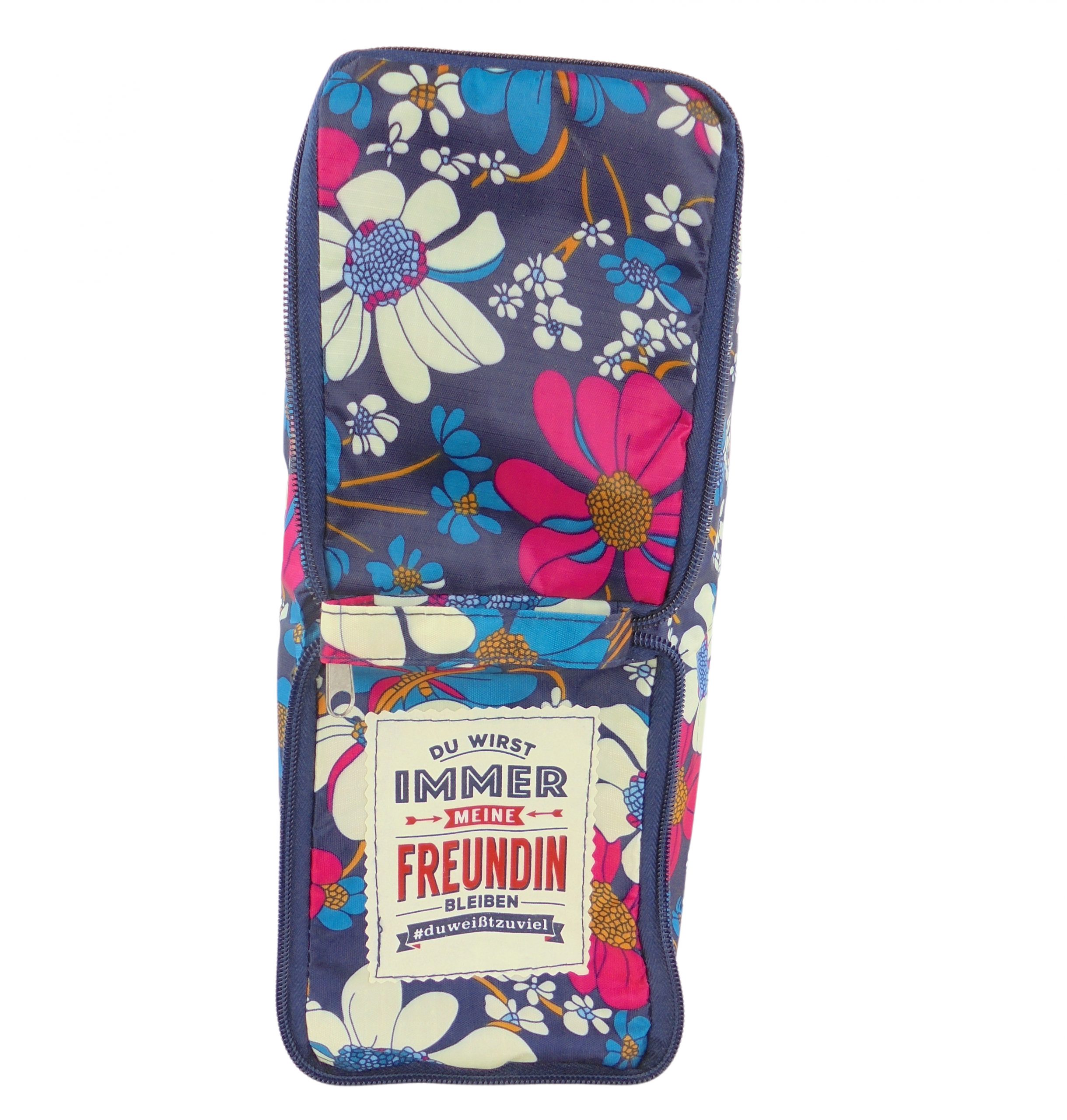 Der Spruch auf der Tasche befindet sich im ausgefalteten Zustand außerhalb am Boden der Tasche. So ist der persönliche Name nicht von Jedermann zu erkennen.