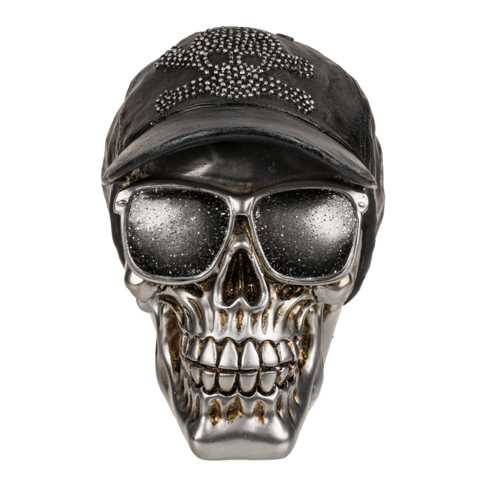Verstecke Deine hart erarbeiteten Schätze in der schaurig-coolen Totenkopf-Spardose mit Basecap.