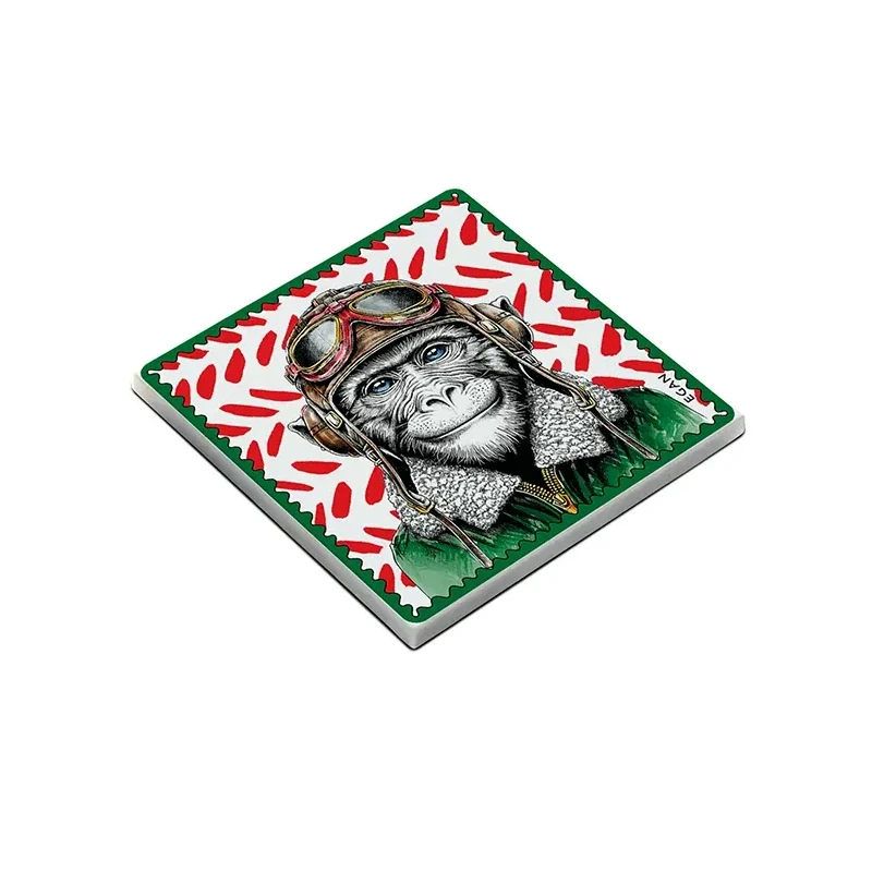 Das kunstvoll gestaltete Motiv zeigt einen Affen mit Pilotenhelm – ein Bild, das sofort auffällt und ein Lächeln weckt. In kräftigen Rot- und Grüntönen gehalten, sprüht es vor Energie und Fantasie. Der Affe steht für Kühnheit, Intelligenz und Spontaneität – Eigenschaften, die den Alltag lebendiger und bunter machen. Dieser Untersetzer erinnert uns daran, mutig zu sein, Risiken einzugehen und die Welt mit offenen Augen zu entdecken.