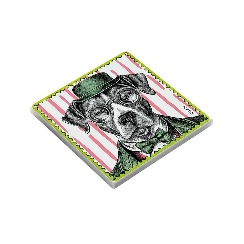 Das liebevoll gestaltete Motiv zeigt einen Hund in eleganter Kleidung und mit charmantem Hut. In warmen Rosa- und Grüntönen gehalten, strahlt die Illustration Ruhe, Nähe und tiefe Zuneigung aus. Der Blick des Hundes berührt – ehrlich, aufrichtig und voller Vertrauen. Genau diese Gefühle bringt der Untersetzer in Ihr Zuhause. Er erinnert Sie an gemeinsame Momente, an offene Herzen und an das Geschenk wahrer Freundschaft.