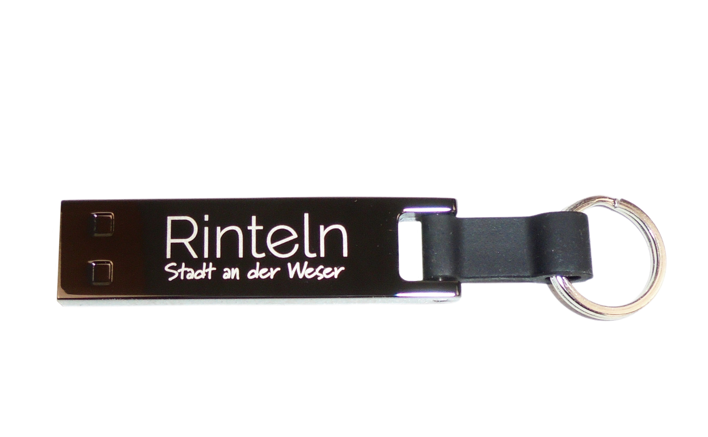 Ein cooles Souvenir ist der USB-Stick mit Rinteln-Schriftzug und praktischen Silikon-Schlüsselband. Der Rintelner USB-Stick (USB-Typ A) bietet mit 32 GB enorm viel Speicherplatz für Musik, Filme und wichtige Dokumente. Zudem ist er mit einer USB 2.0 Schnittstelle ist nicht nur praktisch, sondern auch optisch ansprechend. Durch sein rechteckiges Gehäuse in anthrazit macht der “Rinteln USB-Stick” einen eleganten und hochwertigen Eindruck