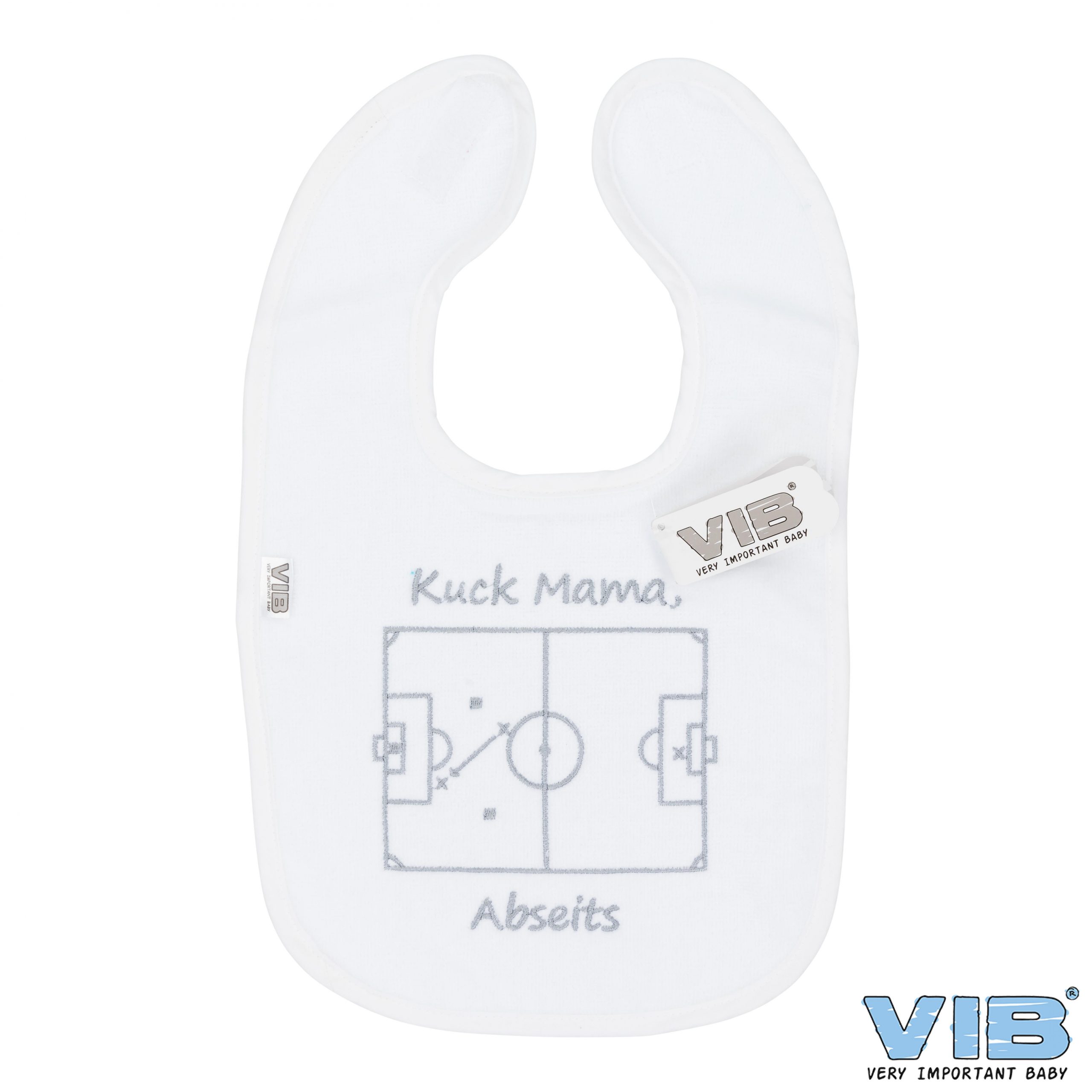 Das Lätzchen mit der edlen Stickerei: “Guck Mama, Abseits.” und dem gestickten Motiv eines Fußballfeldes ist ein besonderes Geschenk für die Allerkleinsten.