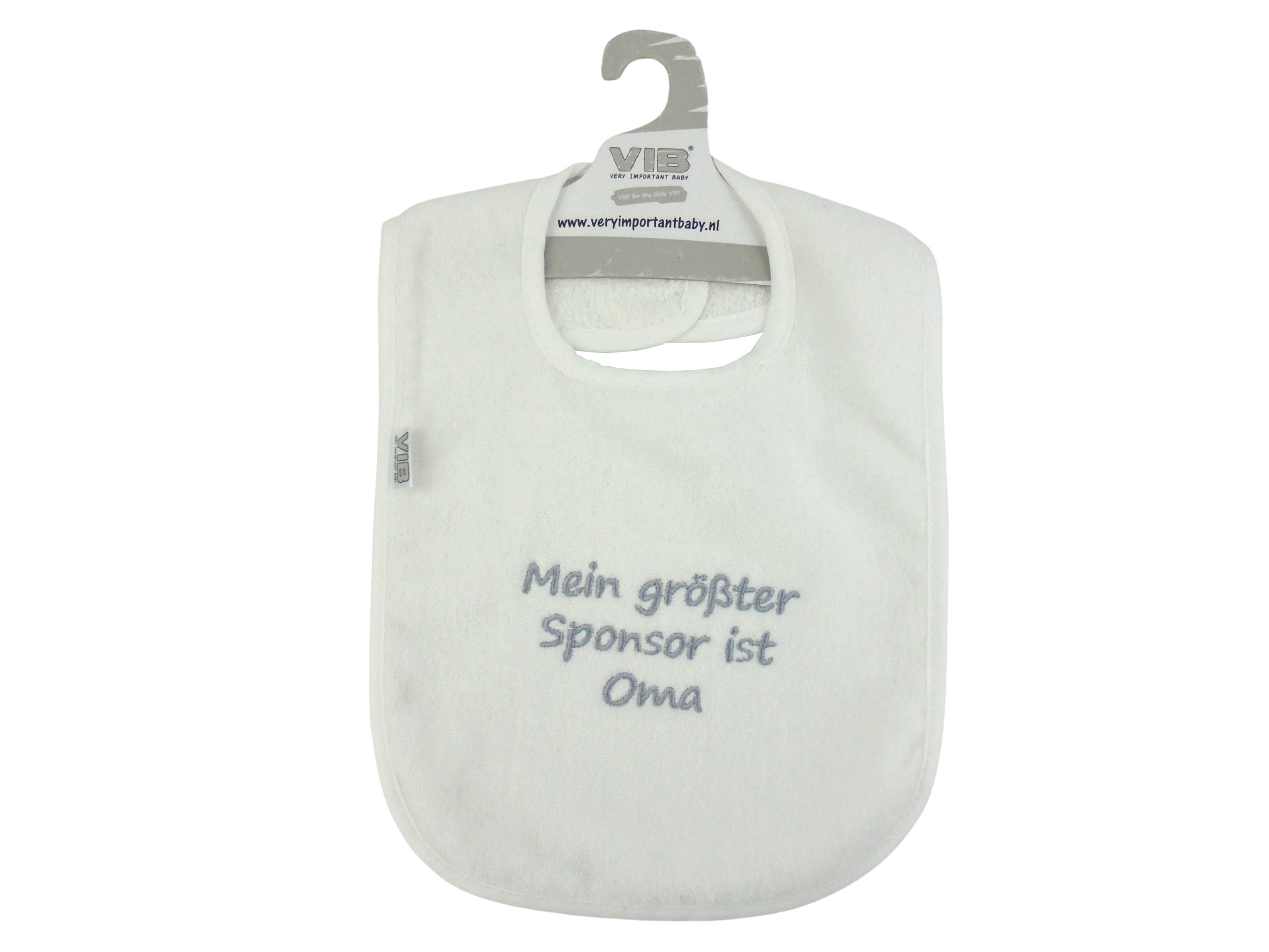 Das Lätzchen mit der edlen Stickerei: “Mein größter Sponsor ist Oma” ist ein besonderes Geschenk für die Allerkleinsten.
