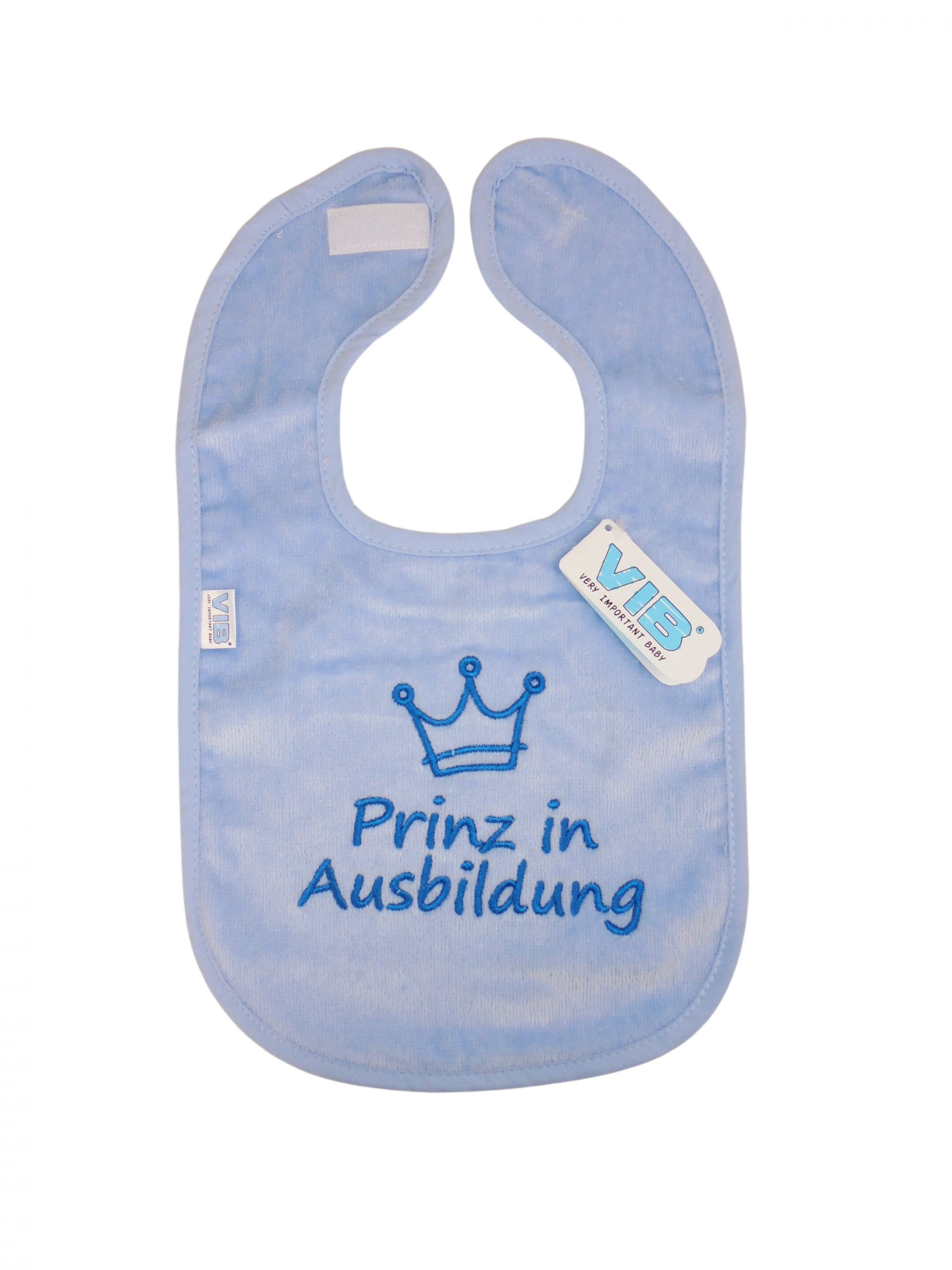 Das hellblaue Lätzchen mit der edlen Stickerei einer Krone und dem Spruch: “Prinz in Ausbildung” ist ein besonderes Lätzchen für alle Babys und deren frisch gebackenen Eltern.