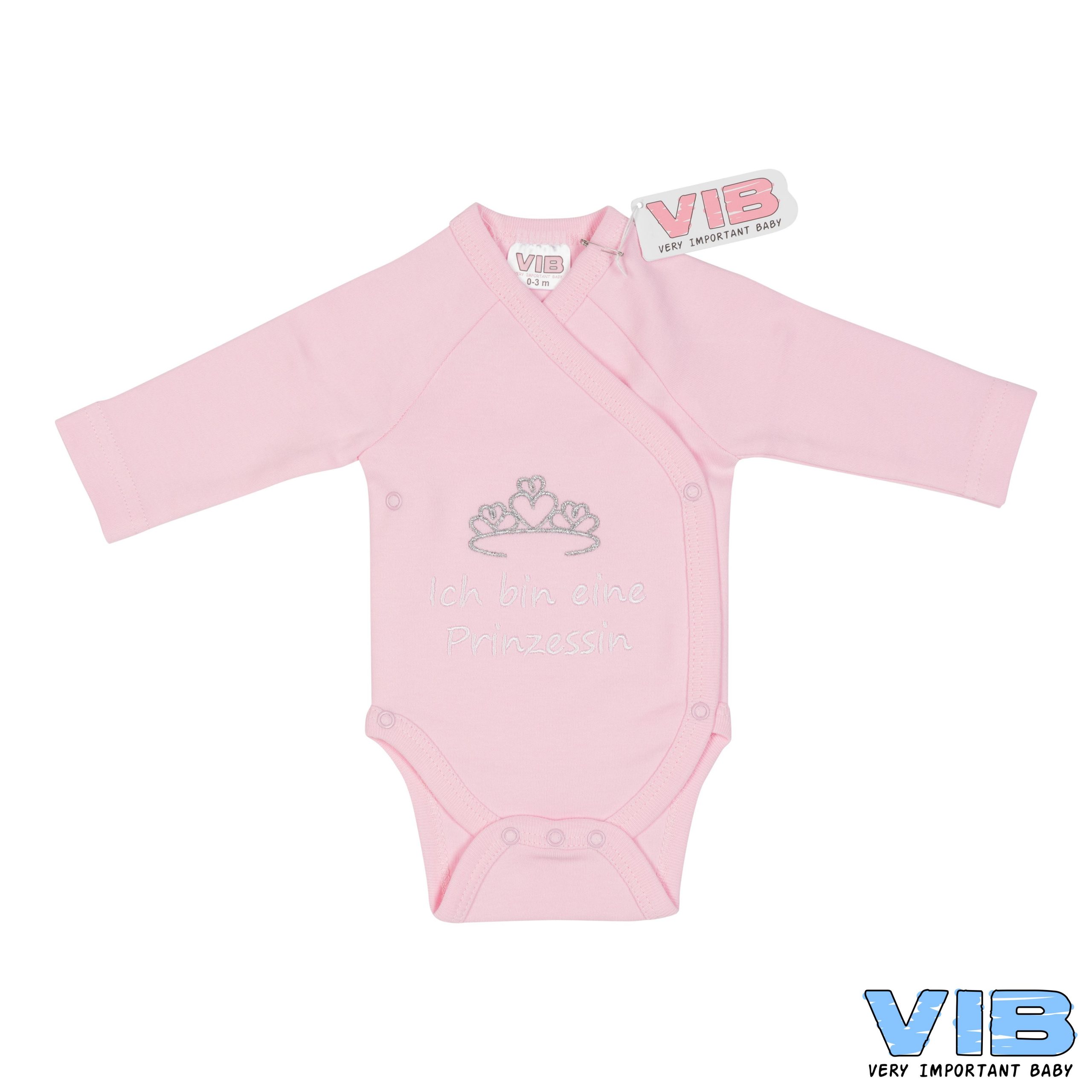 Der niedliche rosafarbene Body, mit der edlen weißen Stickerei: “Ich bin eine Prinzessin” und dem mit silbernem Garn gestickten Diadem, ist ein besonderes Geschenk für alle Babys und deren frisch gebackenen Eltern.