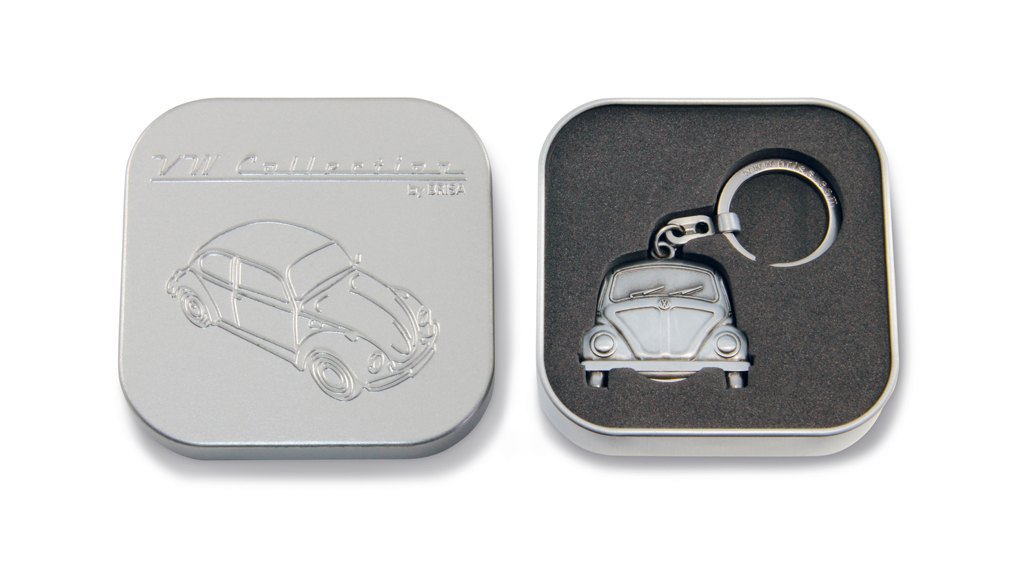 Der trendige VW Schlüsselanhänger in der Frontansicht des knuffigen Käfers ist in diversen Farbvarianten erhältlich und ein besonderes Gadget. Der Anhänger eignet sich als Geschenk und wird in einer edlen Geschenkdose geliefert, die mit einem Metall-Prägemotiv, dem VW-Logo und dem Schriftzug “VW Collection by BRISA!” versehen ist. Die Retro-Aufmachung der Dose macht den Schlüsselanhänger zu einem stilvollen Dankeschön für Freunde oder Familie. Er sieht super an Schlüsselbunden, Rucksäcken, Taschen und Federmäppchen aus und setzt gleichzeitig ein modisches Statement.