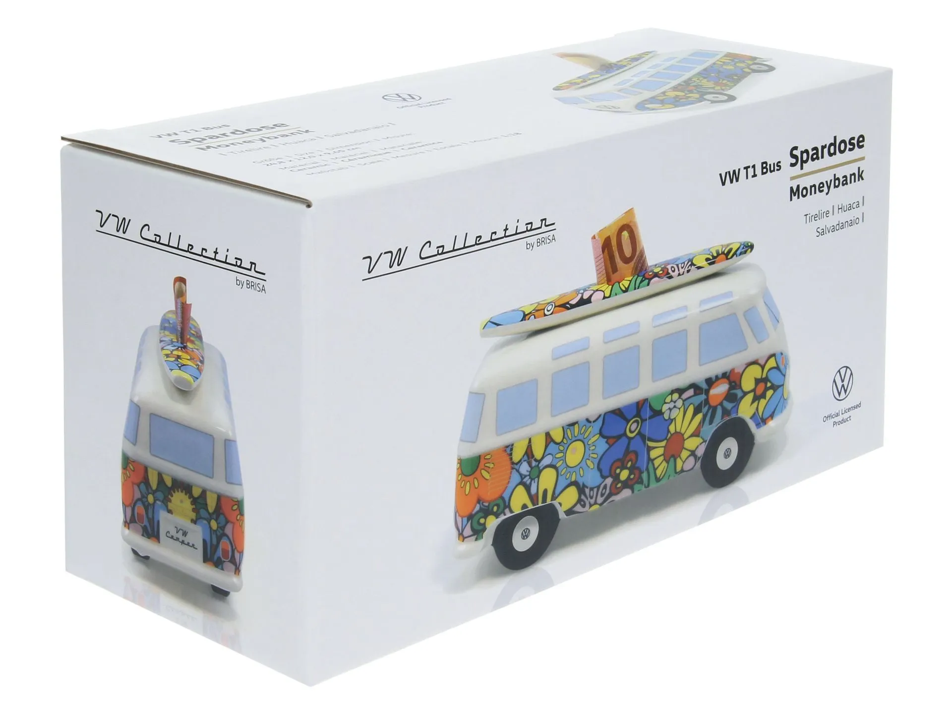 Als offiziell lizenzierter Fanartikel von BRISA erfüllt die VW T1 Bulli Spardose „Blumen“ höchste Qualitätsansprüche. Sie besteht aus hochwertiger Keramik, wirkt stabil und überzeugt durch ihre saubere Verarbeitung. Der Maßstab 1:18 bringt die ikonischen Formen perfekt zur Geltung, während die Maße von 25 x 12 x 10 cm eine angenehme Präsenz schaffen. Zusätzlich liefern wir die Spardose in einer eleganten weißen Geschenkbox, weshalb sie sich ideal zum Weiterverschenken eignet. Ob als Dankeschön, kleine Aufmerksamkeit oder Sammlerstück – dieses Accessoire trifft immer ins Herz. Denn kaum etwas repräsentiert Deutschland so charmant wie diese zeitlose Kult-Stilikone.