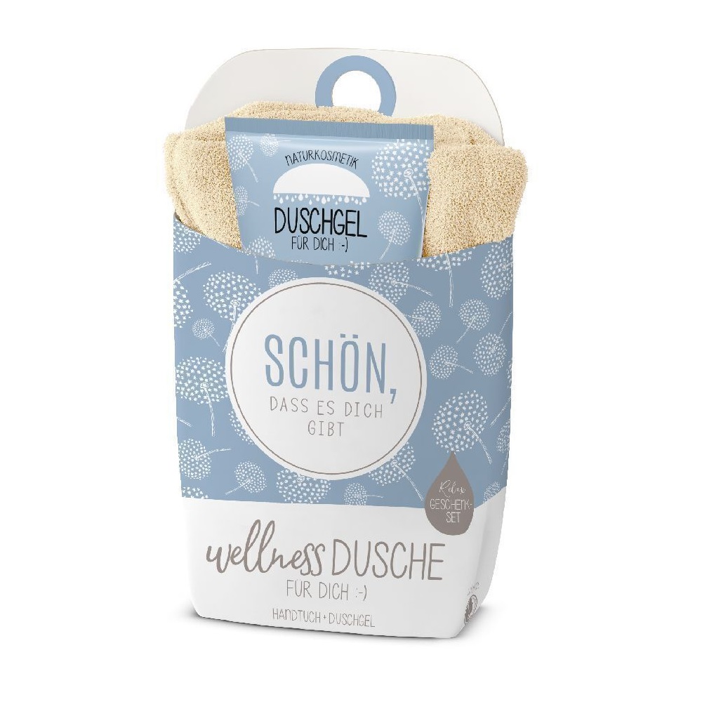 Tauche ein in die Welt der Entspannung mit der Wellnessdusche “Schön” aus der beruhigenden RELAX-Serie, ein Geschenk, das speziell für dich entwickelt wurde. Verziert mit zarten Pusteblumen, bietet dieses Set ein unvergleichliches Erlebnis für Körper und Geist. Schließe deine Augen und lass dich von einem Hauch von Naturkosmetik-Duschgel verwöhnen, das deine Sinne belebt, während es sanft reinigt und Feuchtigkeit spendet.