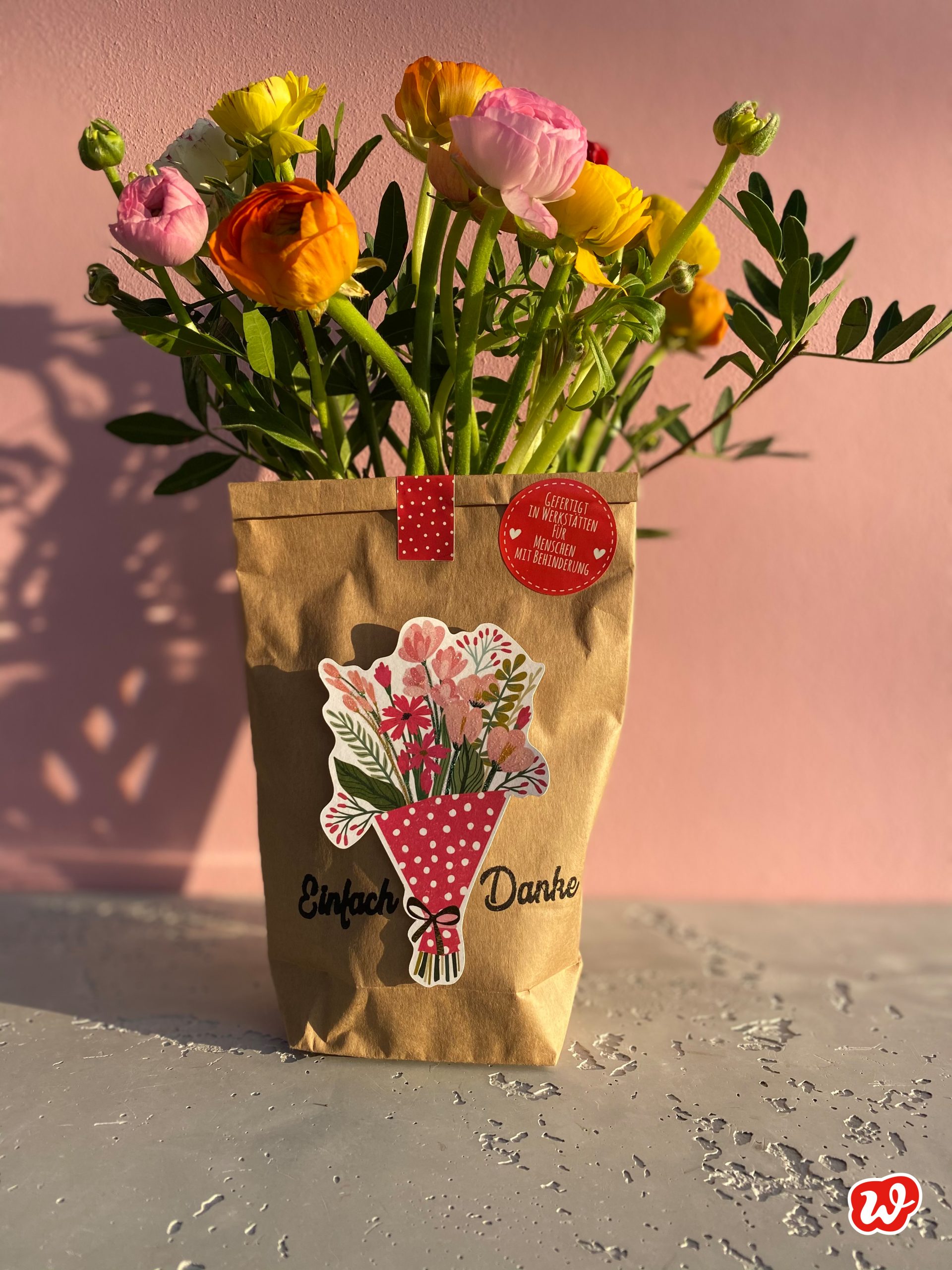 Entdecken Sie das Wunder in jeder Tüte mit der einzigartigen Wundertüte “Einfach Danke”. Diese bezaubernden Tüten sind nicht nur gefüllt mit einer Vielzahl von Überraschungen, sondern auch mit Herz und Seele gefertigt. Jede Wundertüte ist eine Feier der Individualität, handgefertigt von talentierten Menschen mit verschiedenen Handicaps in unseren speziellen Werkstätten.