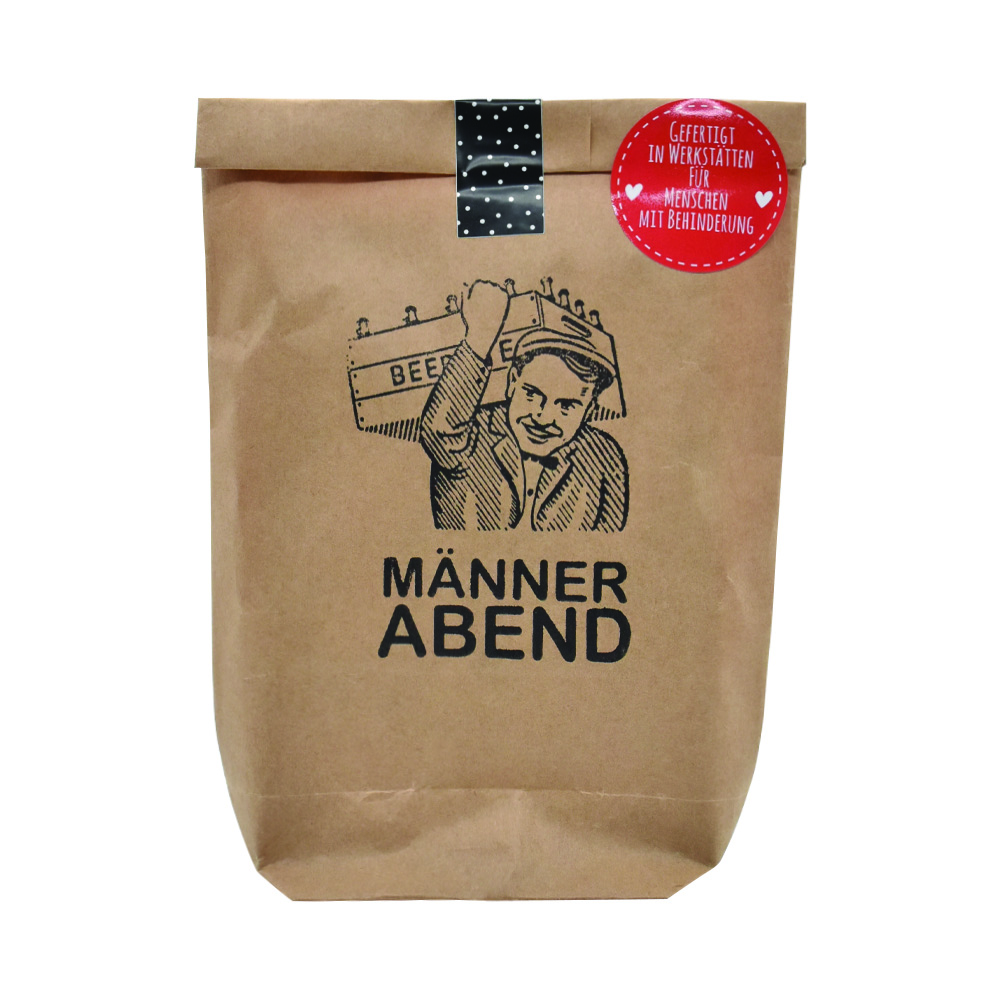 Entdecken Sie das Wunder in jeder Tüte mit der einzigartigen Wundertüte “Männerabend”. Diese bezaubernden Tüten sind nicht nur gefüllt mit einer Vielzahl von Überraschungen, sondern auch mit Herz und Seele gefertigt. Jede Wundertüte ist eine Feier der Individualität, handgefertigt von talentierten Menschen mit verschiedenen Handicaps in unseren speziellen Werkstätten.